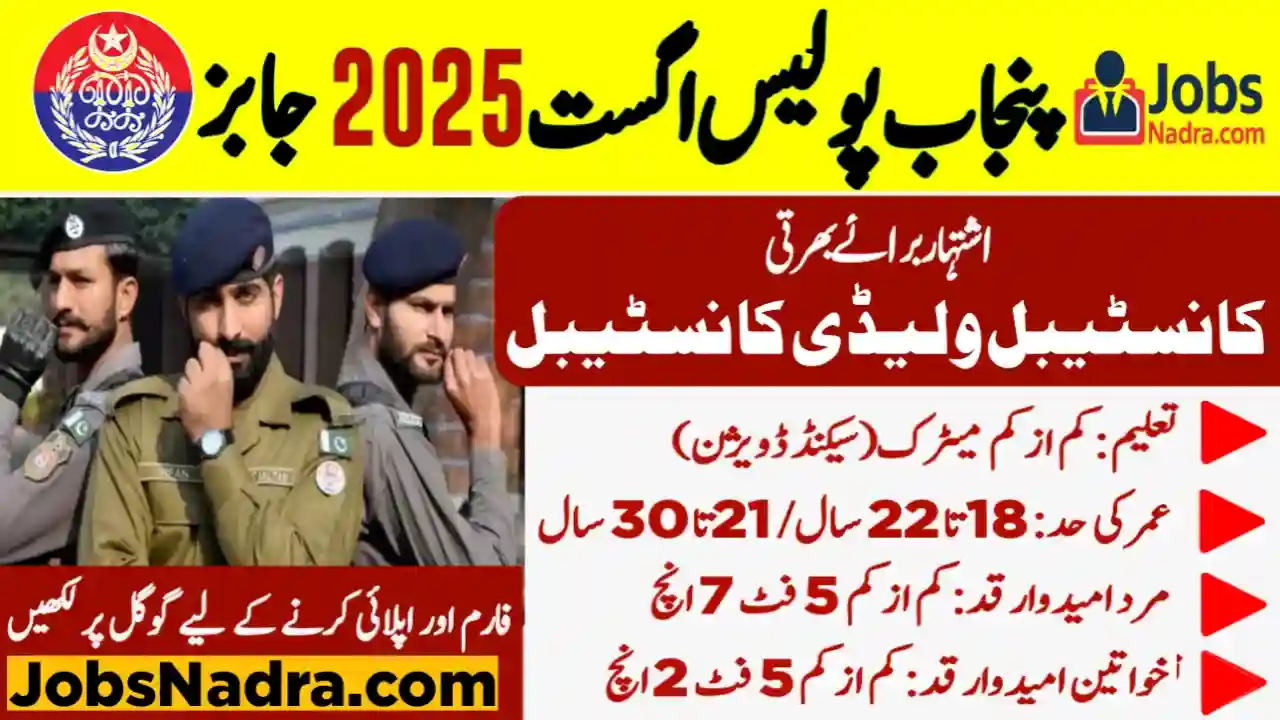 The latest Punjab Police constable jobs open new seats for all eligible candidates looking for a secure government career. Jobs are offered in Lahore, Faisalabad, Rawalpindi, Multan, Bahawalpur, and every district of Punjab.